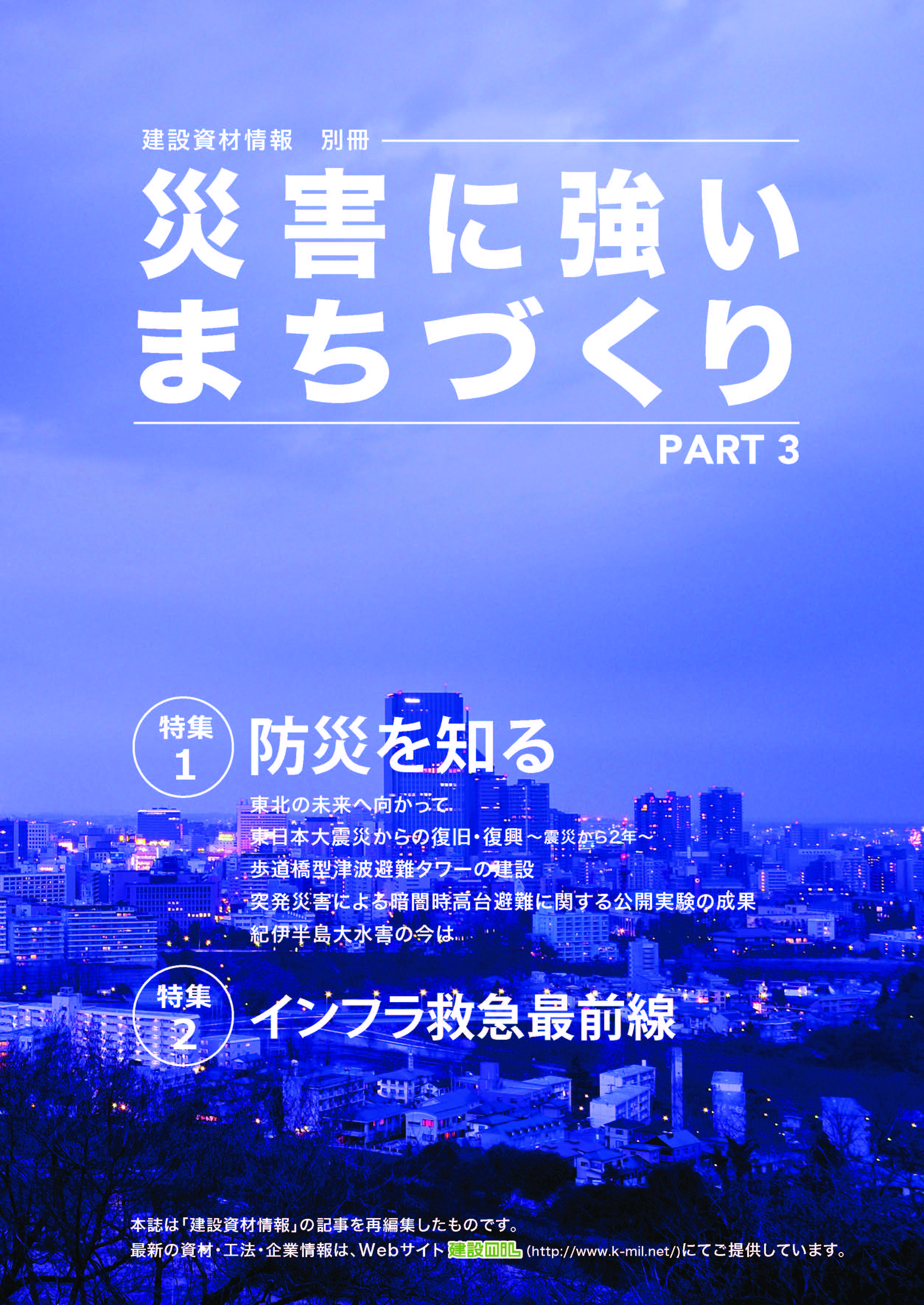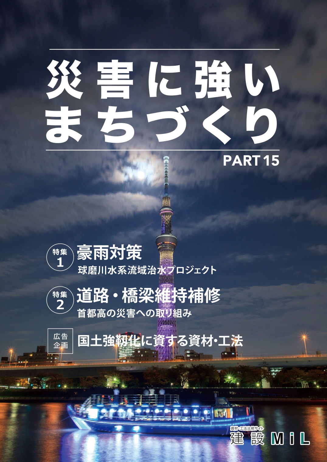 本誌は「災害に強いまちづくり」をテーマとして、豪雨などの自然災害への対応策や、道路橋梁の点検・診断と維持・補修に関する技術について紹介しています。