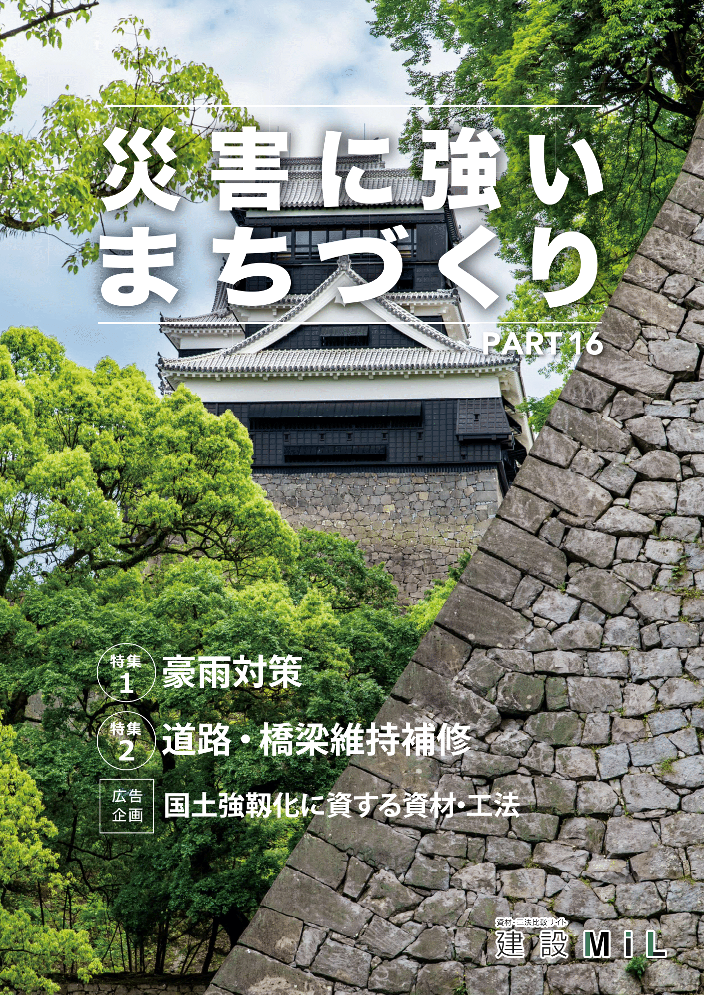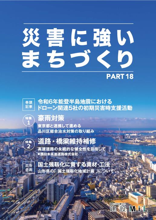 さらに、激甚化する災害から国民の生命と財産を守る国土強靱化について、年次計画の個別施策からピックアップした関連資材・工法を紹介する広告企画「国土強靱化に資する資材・工法」を掲載しています。