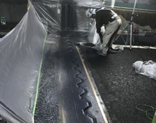 ・現場で作業に必要なスペース(資材置き場、塗布作業用装置の設置)として少なくとも10mx4m(40m2)が確保出来ること。