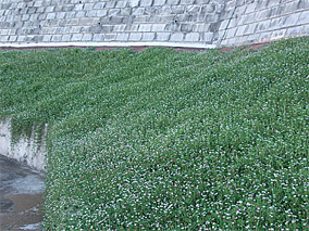 ・防草シート(ザバーン、4層スパンボンド”不織布”)により雑草抑制効果が向上し、維持管理コストが減少する。