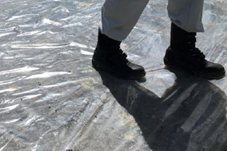 ・法面、斜面養生等において、被覆内部の状況が一目で分かるため、養生シート上を歩く際の安全性の向上が期待できる。