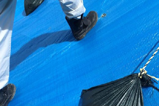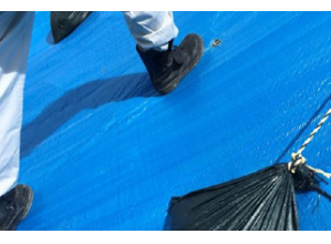 ・一般的なブルーシートと比較し、耐候性が高いシートのため、劣化に伴うシートの張替え手間や産業廃棄物の削減ができる。