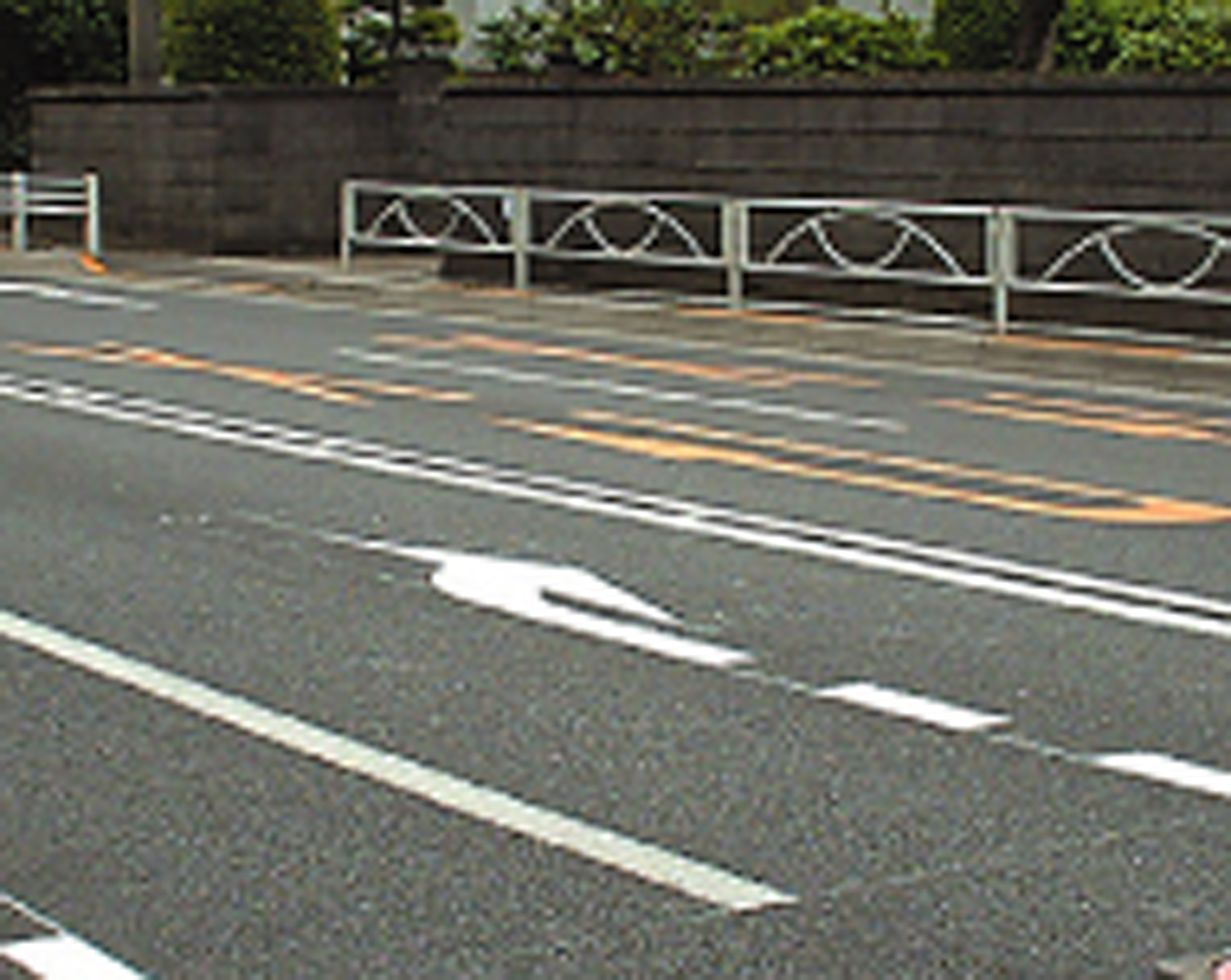・黒の仮ラインを用い、確実に既存区画線を隠すことにより、的確に区画線誘導ができる。