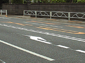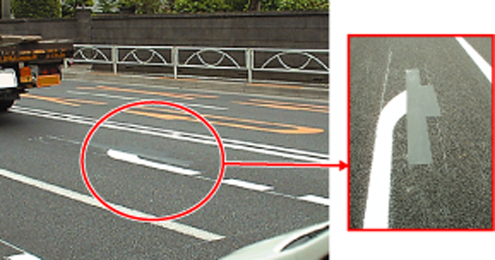 ・道路工事に伴う、一時的な区画線設置、抹消において白・黄の「仮の再帰反射ラインテープ」、黒の「仮ラインテープ」を使用することにより、容易に既存ラインを隠したり、新規に仮ラインを設置できるようになった。