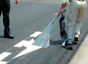 ・道路工事後の区画線復旧を路盤をいためず、瞬時に行うことができる。