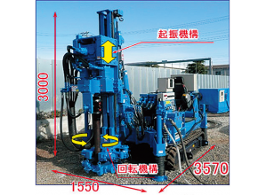 ・小型等厚式施工機による必要作業スペースは200m2(9.5m×21m)程度。また必要プラント設置スペースは200~230m2(18.5m×12m)程度。施工機の高さは10m程度である。