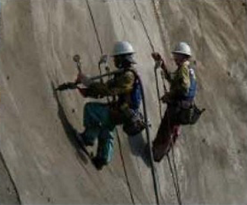 ・アンカーボルトの採用で既設モルタルを確実に地山に固定できる。