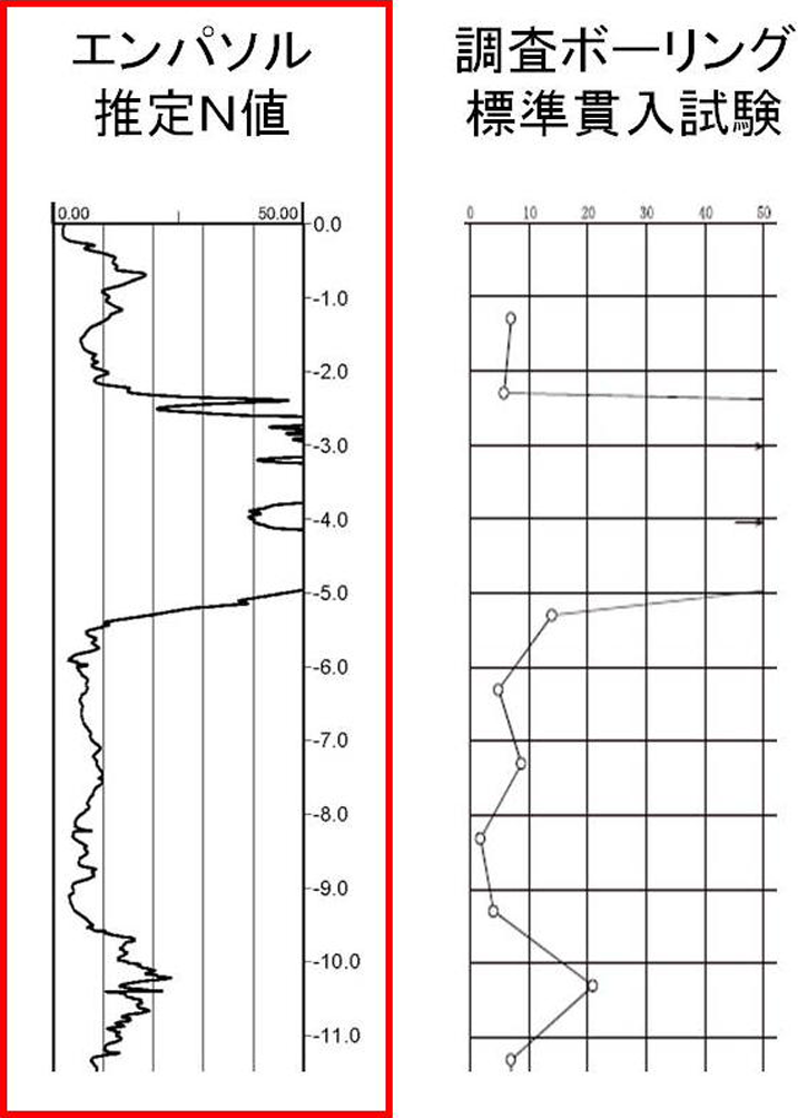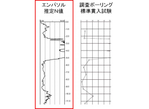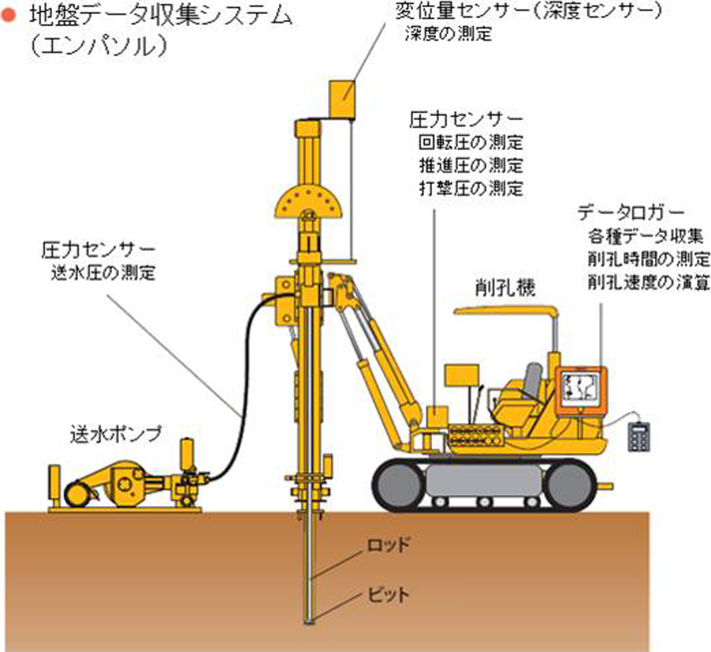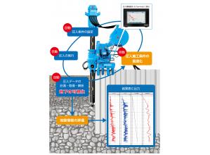 ・標準貫入試験やコアサンプリングが不要で、削孔抵抗値のデータ収集を行う。