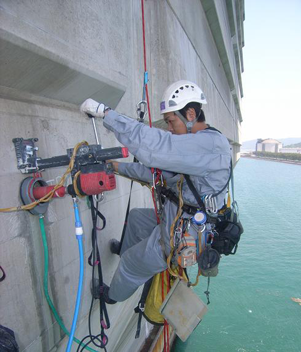 ・作業員は常時、身体がロープや装備具で確保されており安全である。