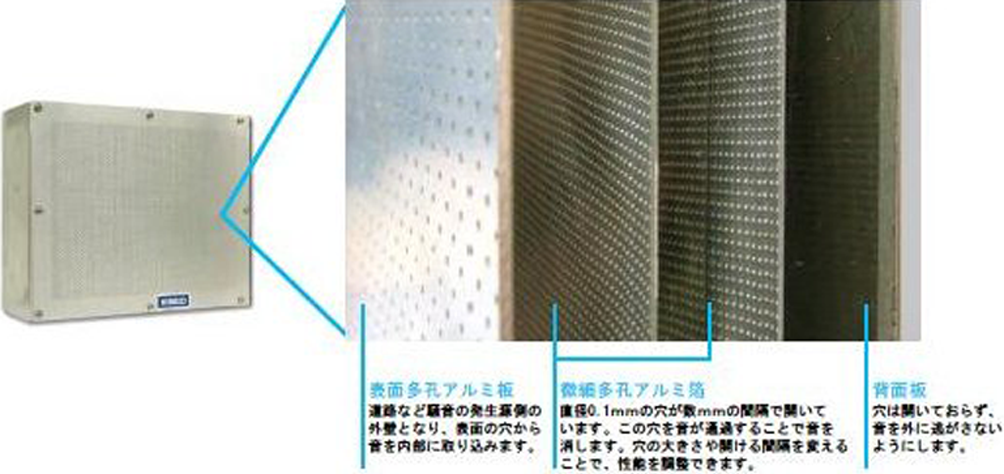 ・吸音材にアルミを用いているため、素材の特性から耐食耐水性に優れ、安定した吸音性能を維持できる。