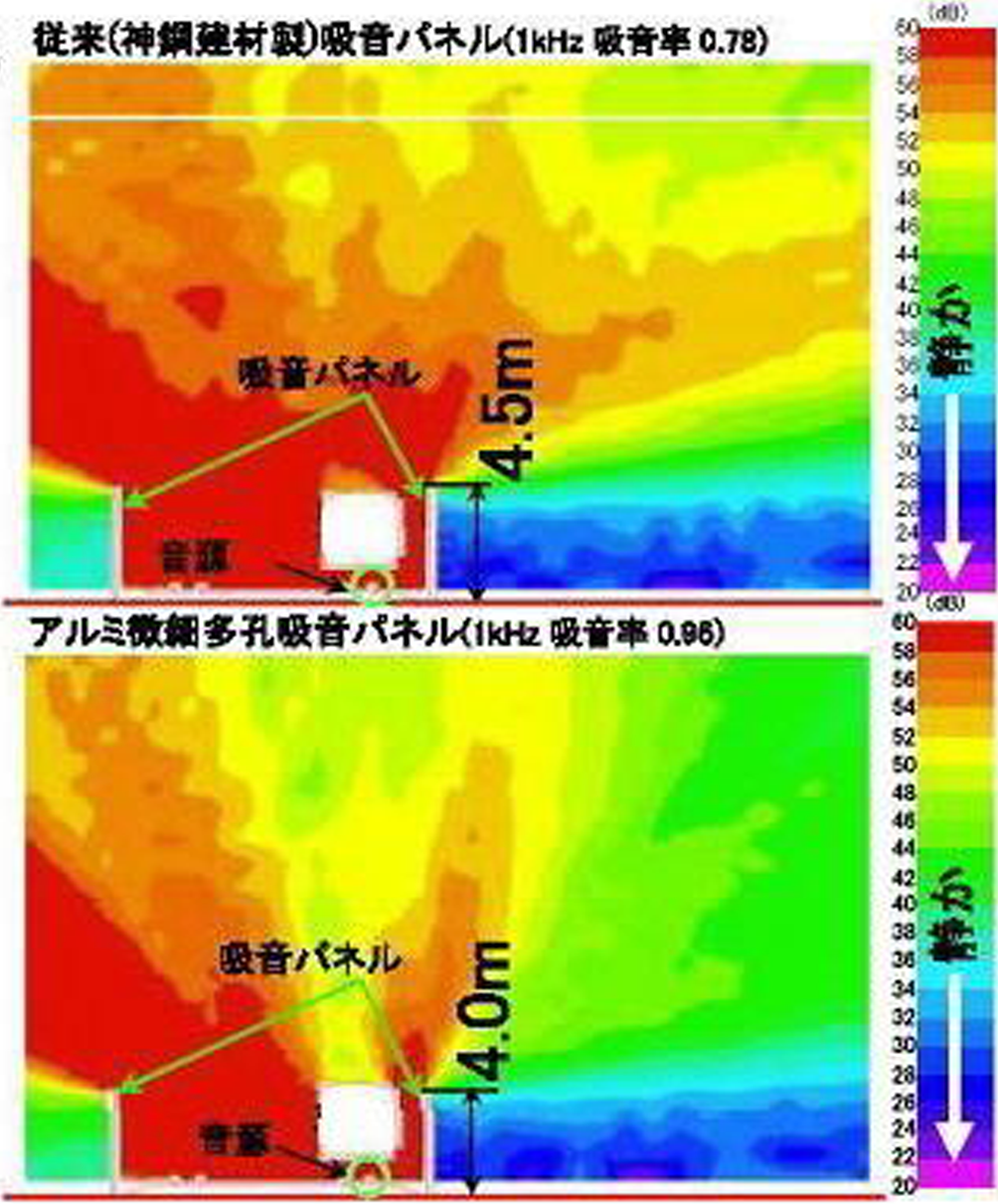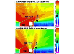 ・吸音材にアルミを使用しており、リサイクル性に優れている。また、解体時に繊維が飛散する恐れがなくなる。