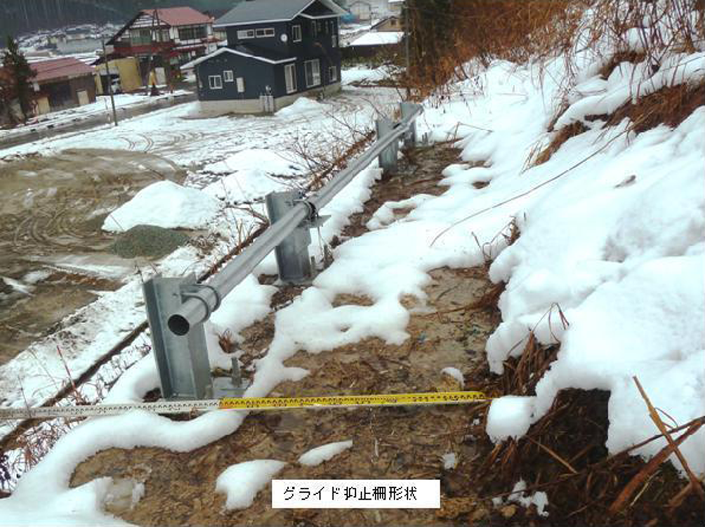 ・グライド抑止柵は積雪深に関わらず柵高さが50cmであり、柵上端に梁材を取付ける。