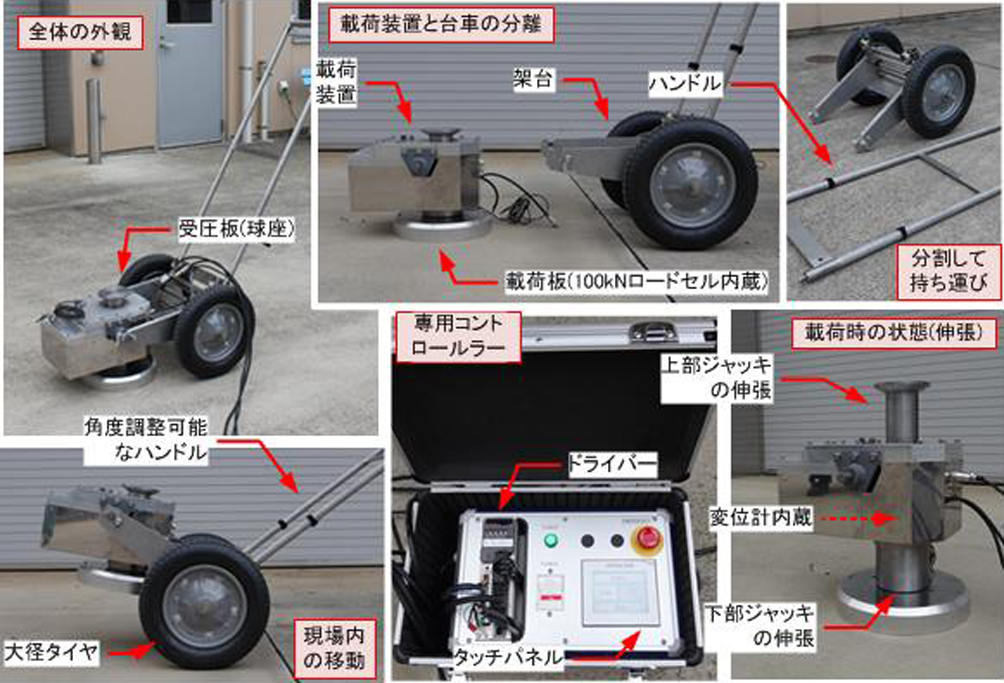・試験用具(載荷板、載荷装置、測定装置)のユニットによって、作業の省力化と安全性の向上が期待できる。