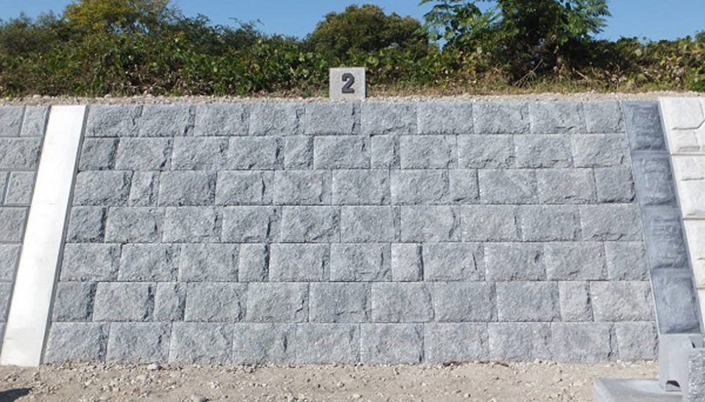 ・使用するコンクリートブロックは、自然石に近い質感を創出。不規則な目地配置が可能となり、人工的な印象は軽減し、景観性が向上する。