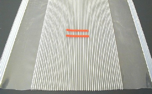 ・1m毎に検尺ラインが印字されており、さらに1箇所につき、2本印字されているため、カット後でも終始部の確認ができる。