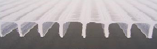 ・シートの中央にリブ構造体を設けているため、アーチ部からの湧水を、端部から漏れることなく下方向に排水できる。