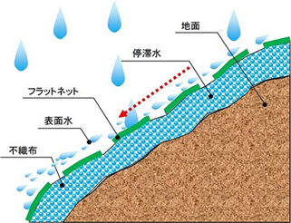 ・フラットな構造のネットに変更することで流下性能が向上し、表面排水を円滑に行うため侵食対策に期待ができる。