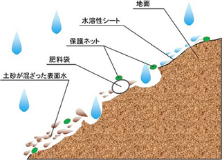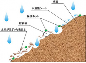 ・降雨により融解しないため、種子の流失を長期間防止できるようになり、梅雨時期や冬季施工においても、より確実に植物を発芽させる効果が期待できる。