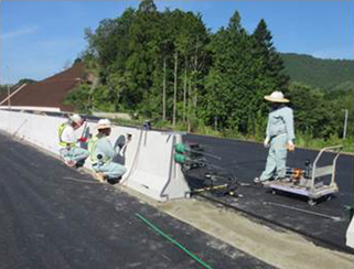 ・製品をPC鋼より線で緊張した後に無収縮モルタルを充填できる構造に変更したことで、据付工⇒PC鋼材配置工⇒PC鋼材緊張工⇒目地部に無収縮モルタル充填⇒鋼材定着欠損部に無収縮モルタル充填の作業が連続して出来るようになった。また、無収縮モルタルの硬化を待つことなく施工が完了するので工程短縮が図れる。