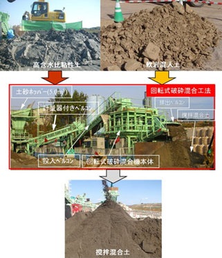 ・盛土材に使用できなかった建設発生土(高含水比の粘性土や粒径200mmまでのレキ混じり砂質土)を、土質改良材を使用せず十分均質に混合された高品質な盛土材に変えた。