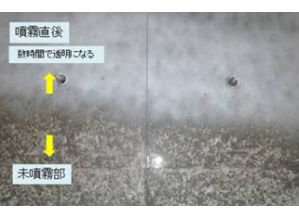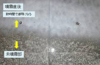 ・優れた水分閉塞性を有する油性混合物を主成分としており、この油性被膜がコンクリート表面を覆うので、コンクリート内からの水の蒸散を大きく抑制する。