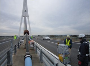 ・コロコロチェッカーは部品の落下を防ぐため、全面をカバーで覆っている。また、本体の落下に関しても二重の安全対策を図っており,高い安全性をもっているため、交通規制を縮小できる。