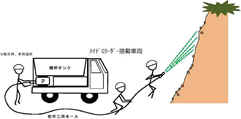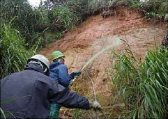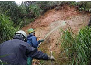 ・土壌面への付着障害を起こしたり、吹付直後の資材が流失したりするため、強風下、降雨・降雪直後や降雨・降雪中の施工は避ける。
