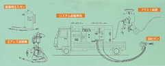 ・ブラスト装置のホース延長が100m以内となること。