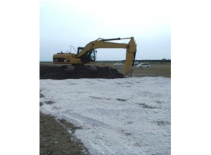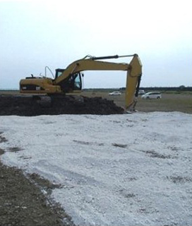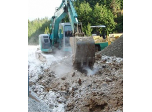 ・消石灰に石膏を複合させることにより、高い強度発現を可能とし、尚且つ加水を行うことで粒子を凝集化させ防塵性を高めている。