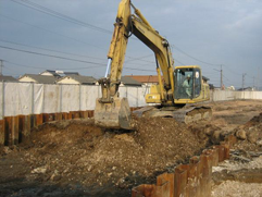 ・掘削機(バックホウ)、混合攪拌機、土質改良機等が設置できるヤードが確保できること。