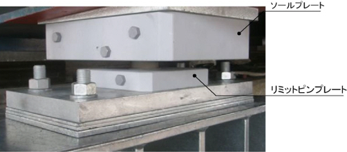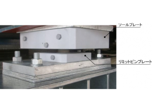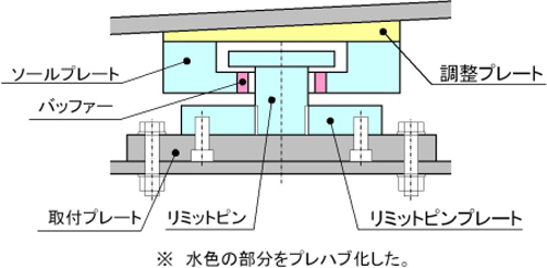 ・上部構造の浮き上がりを防止するリミットピン上部につけたフランジと、衝撃的な力を緩和するバッファーを設けた。