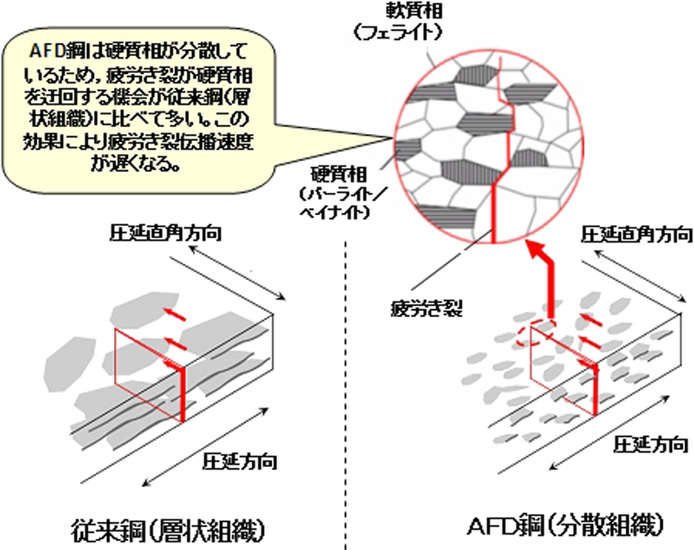 疲労き裂伝播速度を低下させた構造用鋼板(AFD鋼:Anti-Fatigue Damage鋼)
