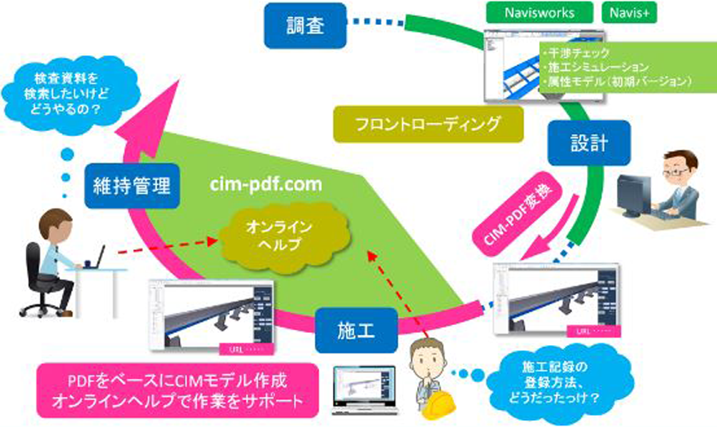 ・設計情報や施工管理記録が属性情報として付与されたCIMモデルが無償のPDFビューワ(Acrobat Reader)で利用できると、扱い易いので将来の維持管理の効率化に寄与することが期待される。