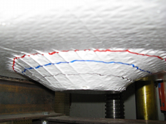 ・ハツリ作業での重機等や結果として発生する重量物のコンクリートガラ等など、足場(移動式含む)等の仮設物に大きな負担をかけるため、その施工に際して足場構造の確認や施工範囲の制限を設けるなど、施工管理・安全管理に大きな影響を及ぼしていたが、ビニロン製連続繊維シート貼付工法は軽量なシートを樹脂で接着・固定するため足場等の仮設物へのそれら負担を大きく軽減できる。