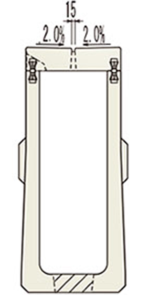 ・標準部の完成系は落蓋ではなく管渠型構造としたことにより、ガタツキによる騒音が発生しない(集水は縦断方向の縦スリットにより可能)。