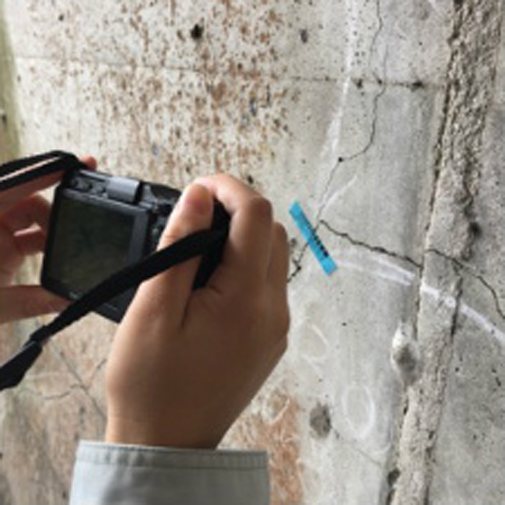 ・貼れるクラックスケールを使えば一人で撮影が可能となり、作業の効率化及びコストの削減効果が期待される。