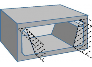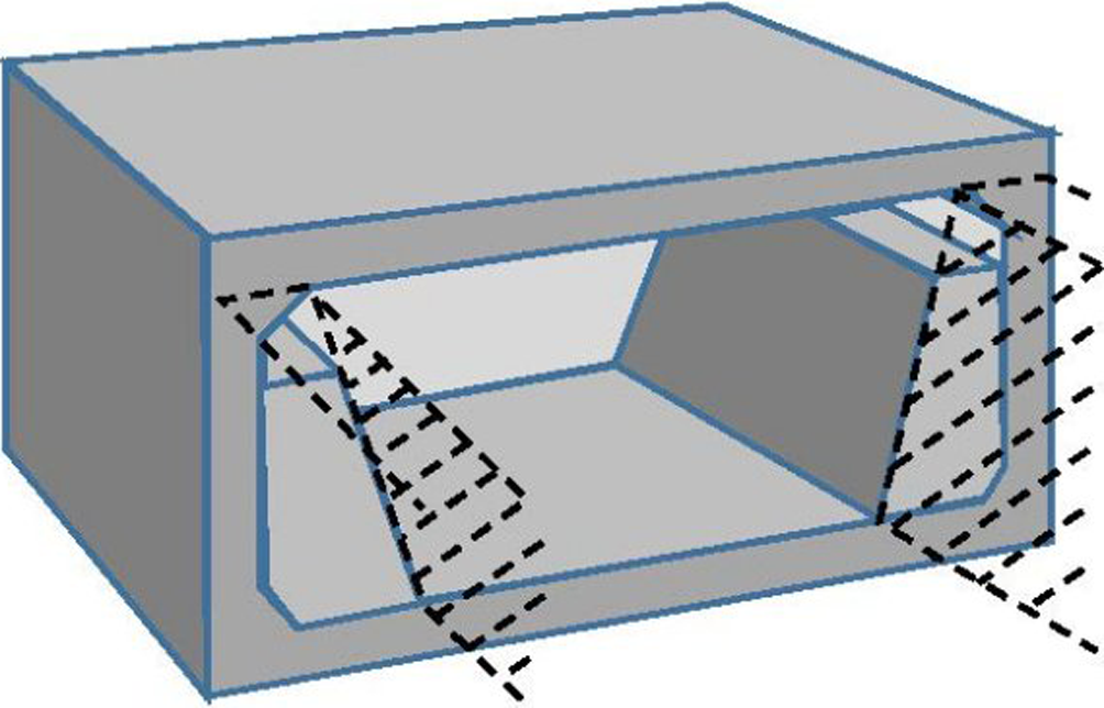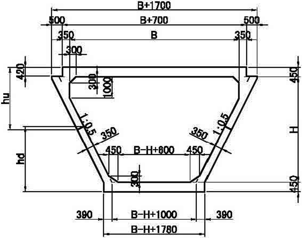・ボックスカルバートの断面形状を四角形から逆台形に変えた。