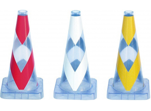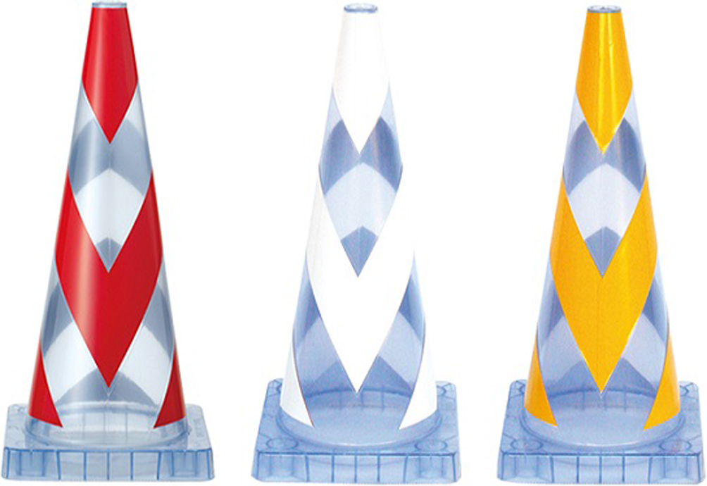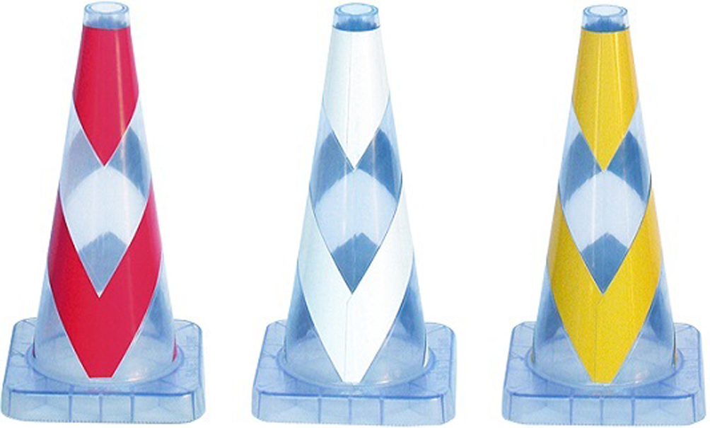 従来技術の不透明なカラーコーンを、半透明として内部を可視できるようにした。