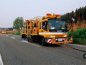 ・水性路面標示用塗料を自然乾燥で対応していたものから、特殊硬化液散布を散布する強制乾燥に変えた。