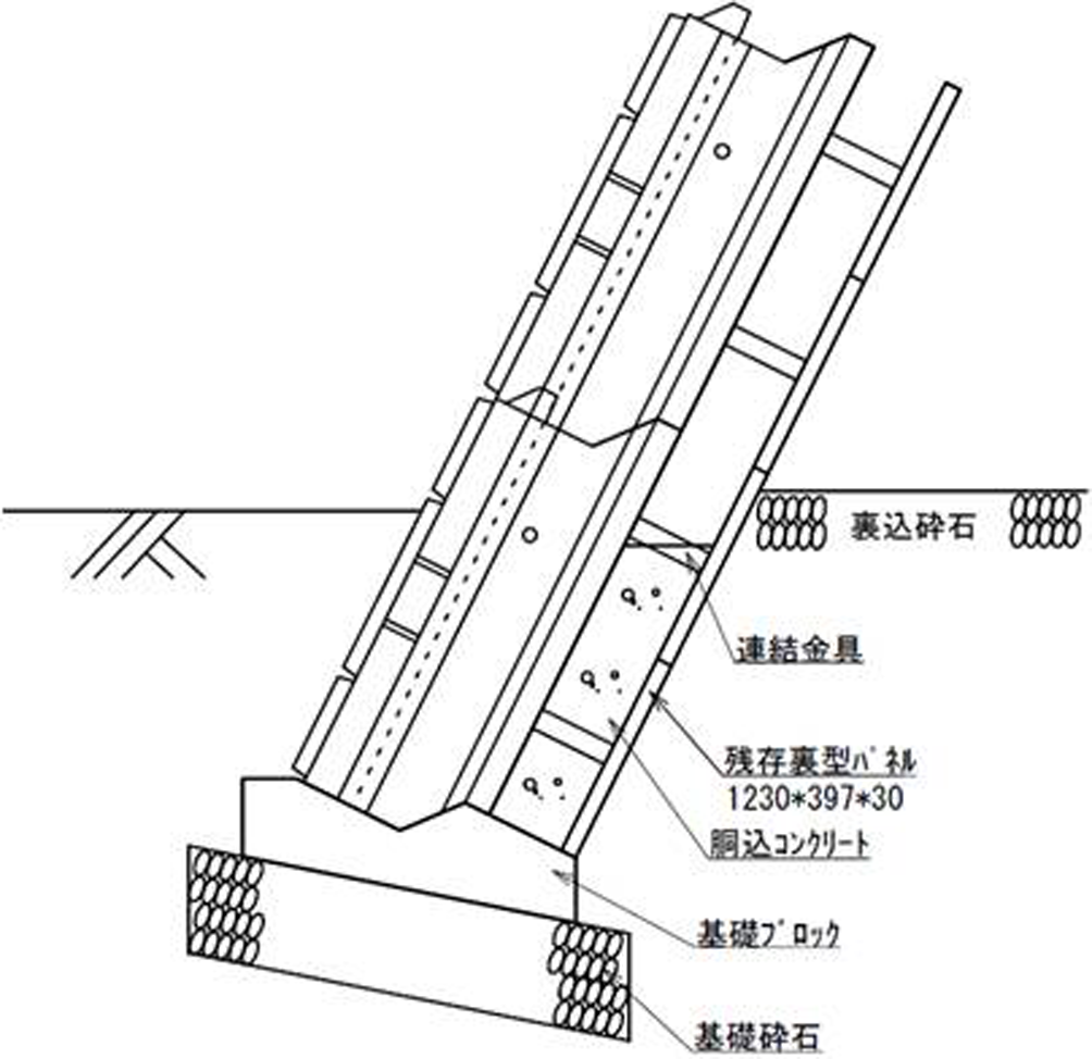 ・鋼材で大型ブロックとコンクリート版を接続することにより、胴込コンクリートの打設幅が固定されるので、施工性が向上する。