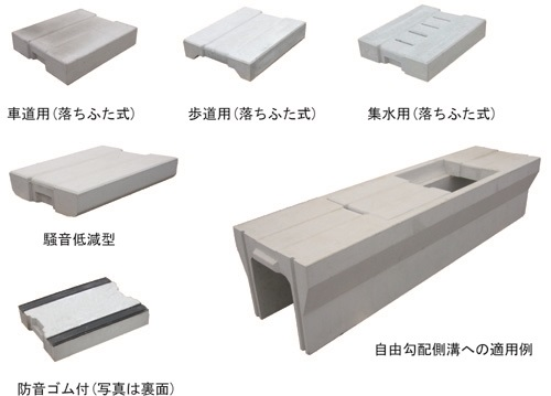 従来の側溝蓋に集水機能として、表面に窪みを設け集水し、手掛け部を曲面状とすることで、水流の特徴を生かし、コアンダ効果を利用して、手掛け部に排水機能を付加した技術。