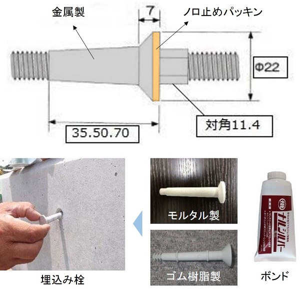 ・埋込み栓の材質は、モルタル製あるいはゴム樹脂製の2種類から選定できるようにした。