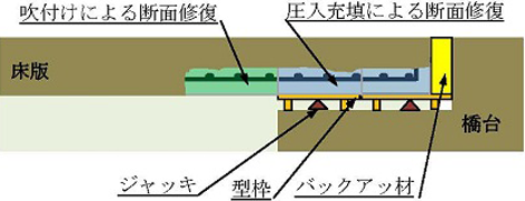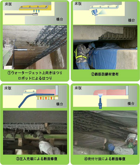 ・狭隘な空間でも断面修復が可能な高強度繊維補強モルタルを用いた圧入充填工法を開発した。