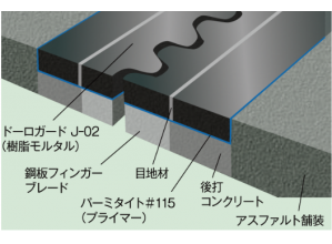メタクリル(MMA)樹脂モルタルを用いた、橋梁床板上面増厚工における橋梁伸縮装置の嵩上げ工法