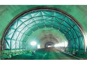 トンネルの覆工コンクリートの乾燥収縮を抑制する方法を、材料からエアーマット及び架台を使用したシステムに変えた。