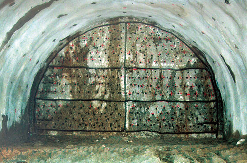 注入式ロックボルトの口元コーキングを膨張式のラバーパッカーとし、ボルト定着