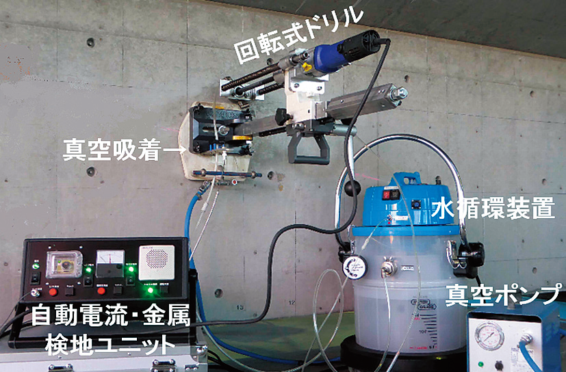 ・削孔機にシース接触を検知し、削孔を自動停止できる制御システムを取り付けた。