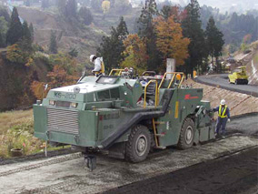 ・フォームドアスファルトを用いて湿潤状態の細粒分を含む材料、低品質骨材、アスファルト再生骨材などを常温混合安定処理する省資源・省エネルギー工法