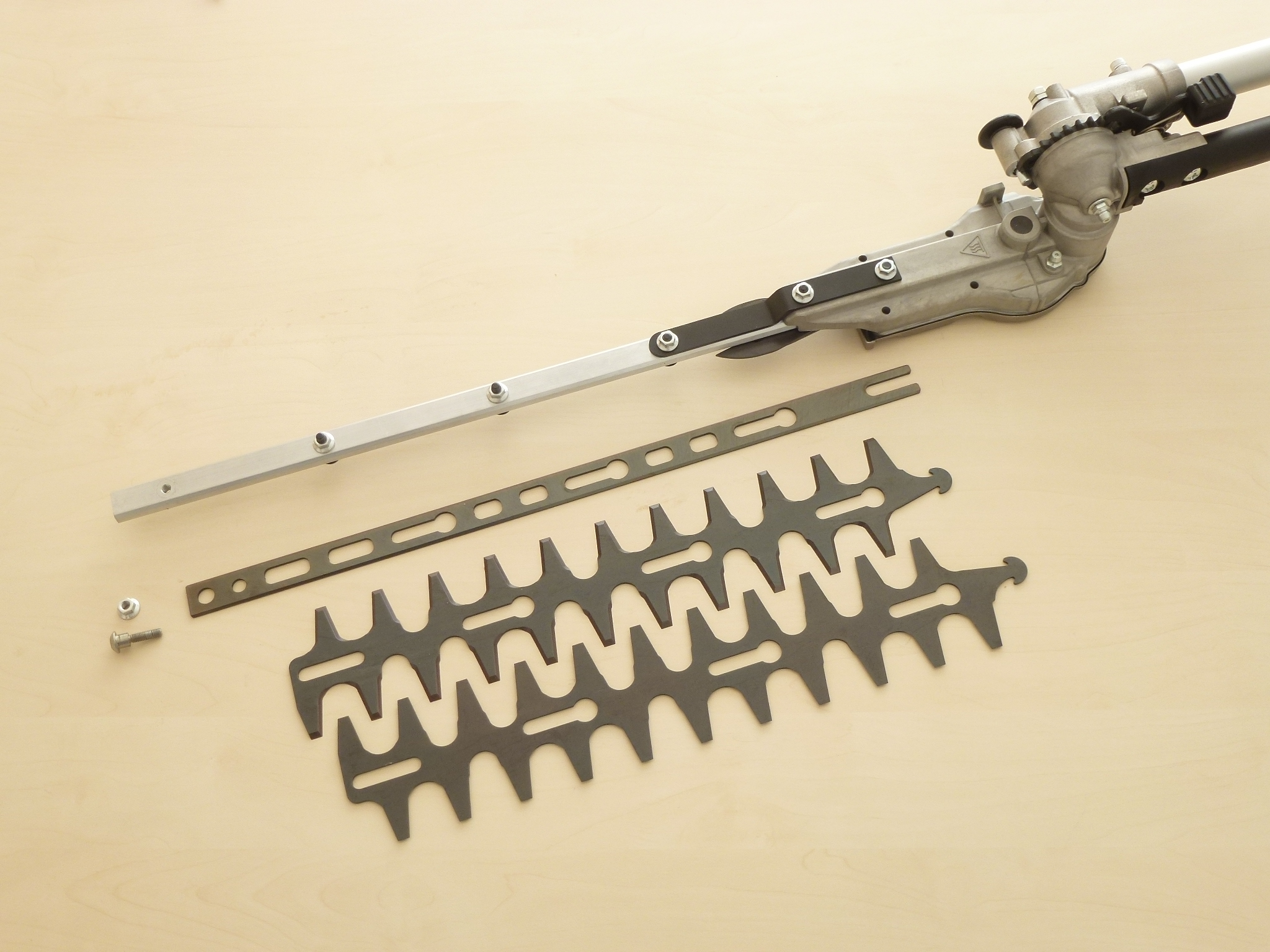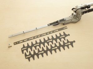 ・従来のトリマータイプ(バリカンタイプ)の場合は刃を研ぐ際は万力等でヘッド部を固定して刃を研ぐ必要があった。また、刃を外す方法もあるがヘッド部(ギアボックス)を分解する必要があり相当の時間を要する他、相当の技術が必要であった。したがって、従来作業では回転式草刈機にて行っていた。しかし、安心トリマーくんは従来にはなかった替刃の交換が非常に簡単で、刃研ぎも簡単にできる様に改善しており現場作業に適した製品になっている。