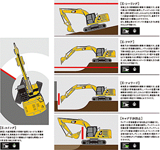 安全機能と低燃費機構搭載型Cat油圧ショベル